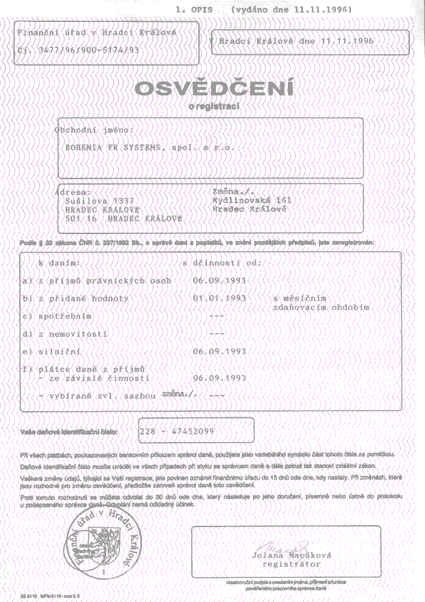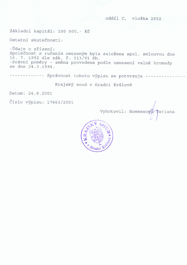 Výpis z obchodního rejstříku (1.strana / 2.strana)